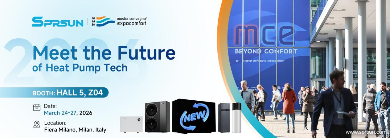 SPRSUN er stolte af at annoncere sin deltagelse i MCE 2026 – Mostra Convegno Expocomfort, den førende globale udstilling for HVACR-industrien, afholdt i Milano, Italien. Fra den 24. til den 27. marts 2026 vil vi afsløre vores seneste serie af luftvarmepumper, designet til at sætte nye benchmarks i effektivitet og ydeevne.